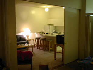 ベットルームから見たダイニング。